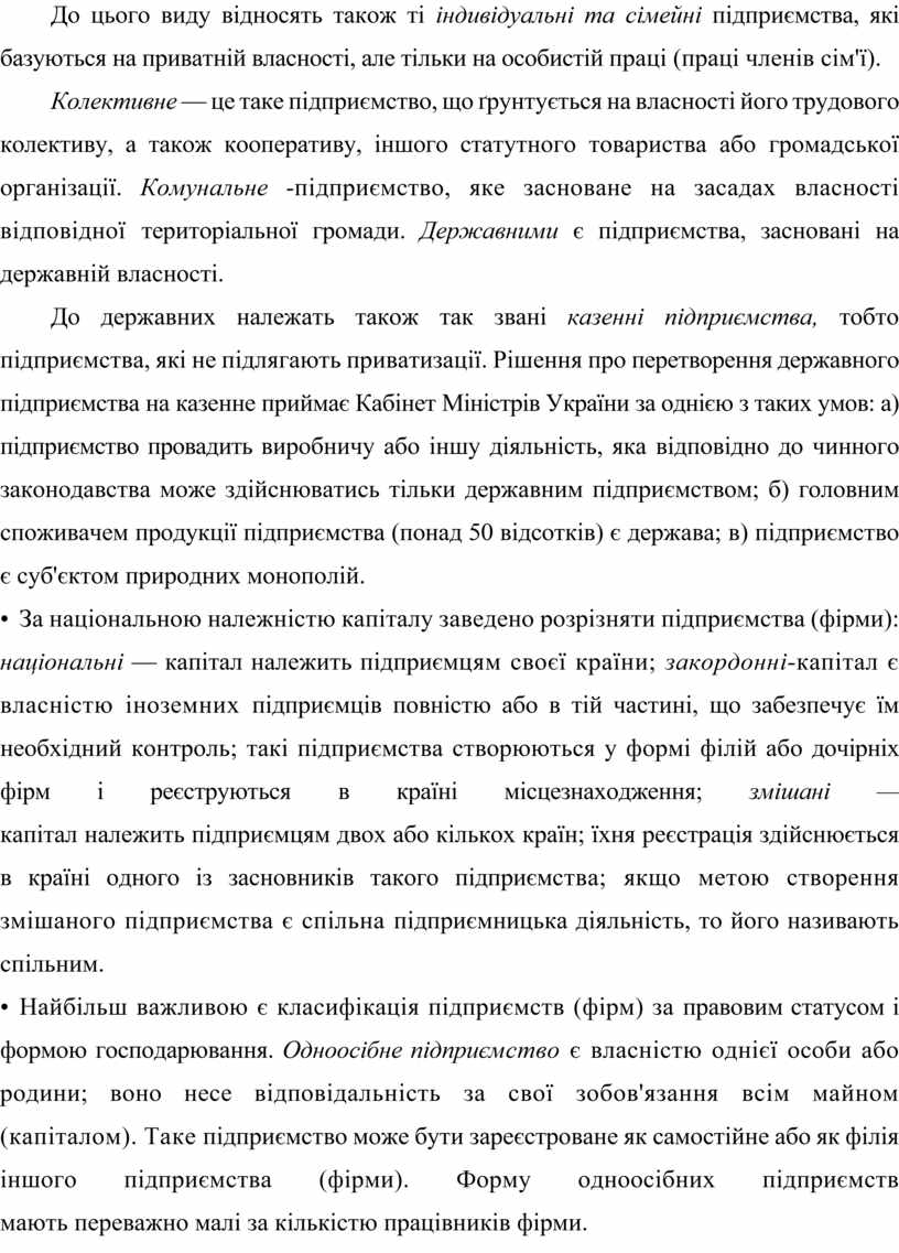 (фірм) за правовим статусом і формою господарювання. Одноосібне