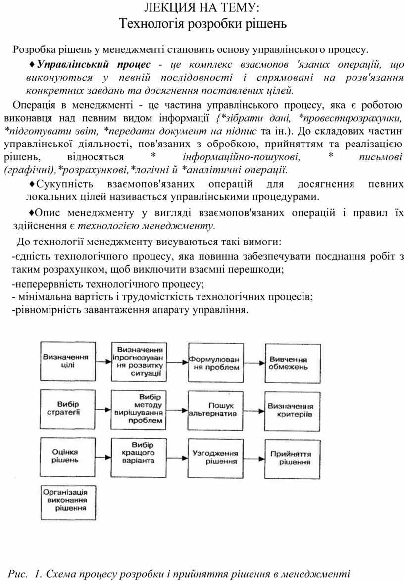 Рис. 1. Схема процесу розробки і прийняття рішення в менеджменті
