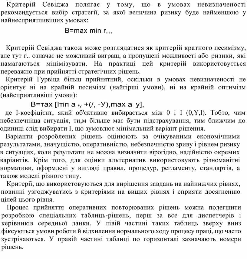 де І-коефіцієнт, який об'єктивно вибирається між 0 і І (0,Y,l). Тобто, чим небезпечніша ситуація, ти,м більше має бути підстрахування, тим ближчим до одиниці слід вибирати І, що зумовлює мінімальний варіант рішення.