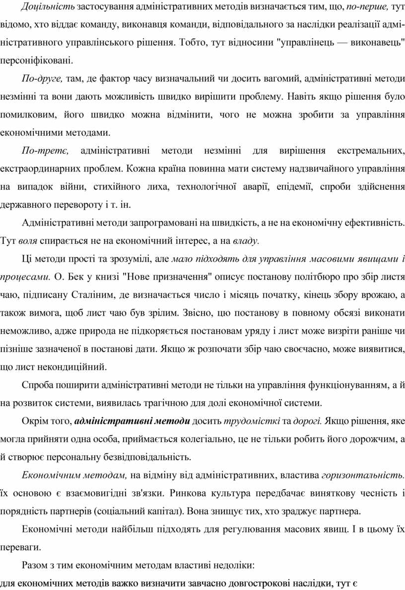 Адміністративні методи запрограмовані на швидкість, а не на економічну ефективність. Тут воля спирається не на економічний інтерес, а на владу.
