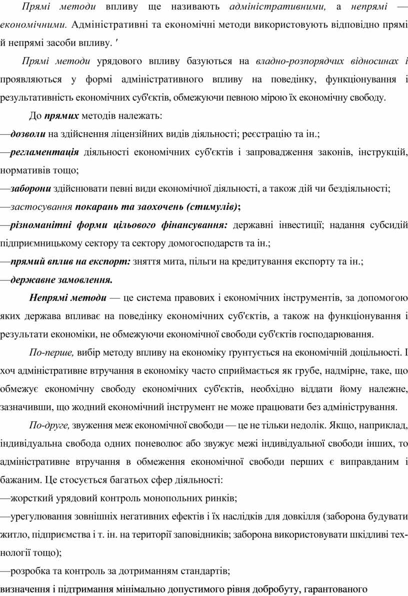 Уряд використовує для впливу на економіку прямі та непрямі методи.