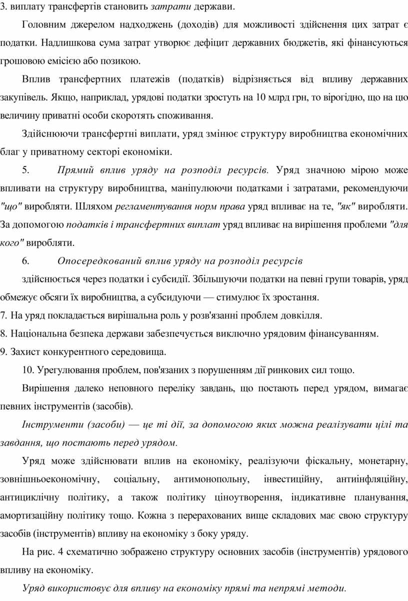На рис. 4 схематично зображено структуру основних засобів (інструментів) урядового впливу на економіку.