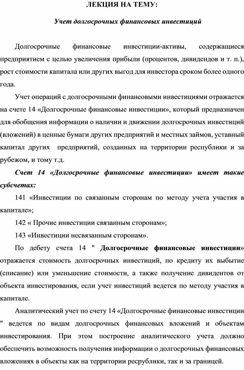 Учет долгосрочных финансовых инвестиций