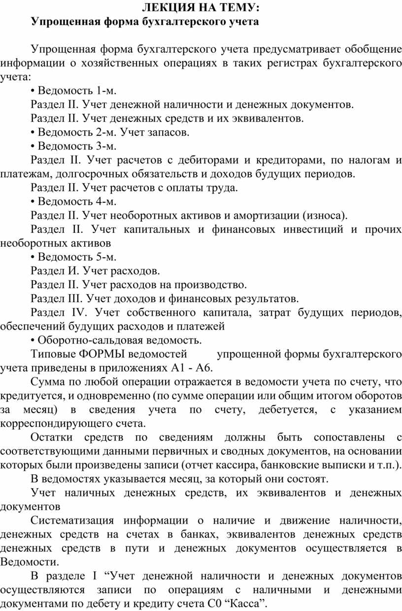 Упрощенная форма бухгалтерского учета предусматривает обобщение информации о хозяйственных операциях в таких регистрах бухгалтерского учета: