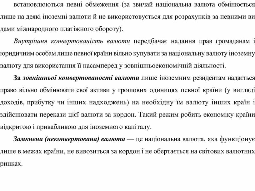Конвертованість валюти означає ступінь її здатності вільно обмінюватися на національні грошові одиниці інших країн.