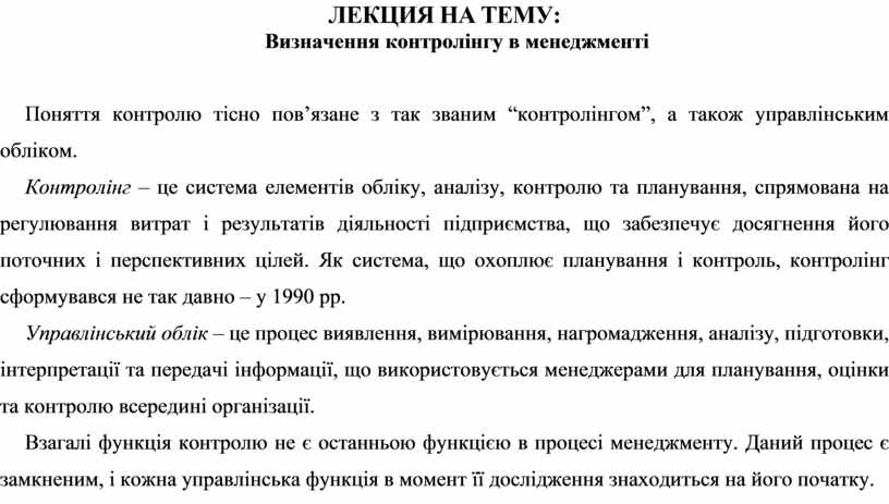 Поняття контролю тісно пов’язане з так званим “контролінгом”, а також управлінським обліком.