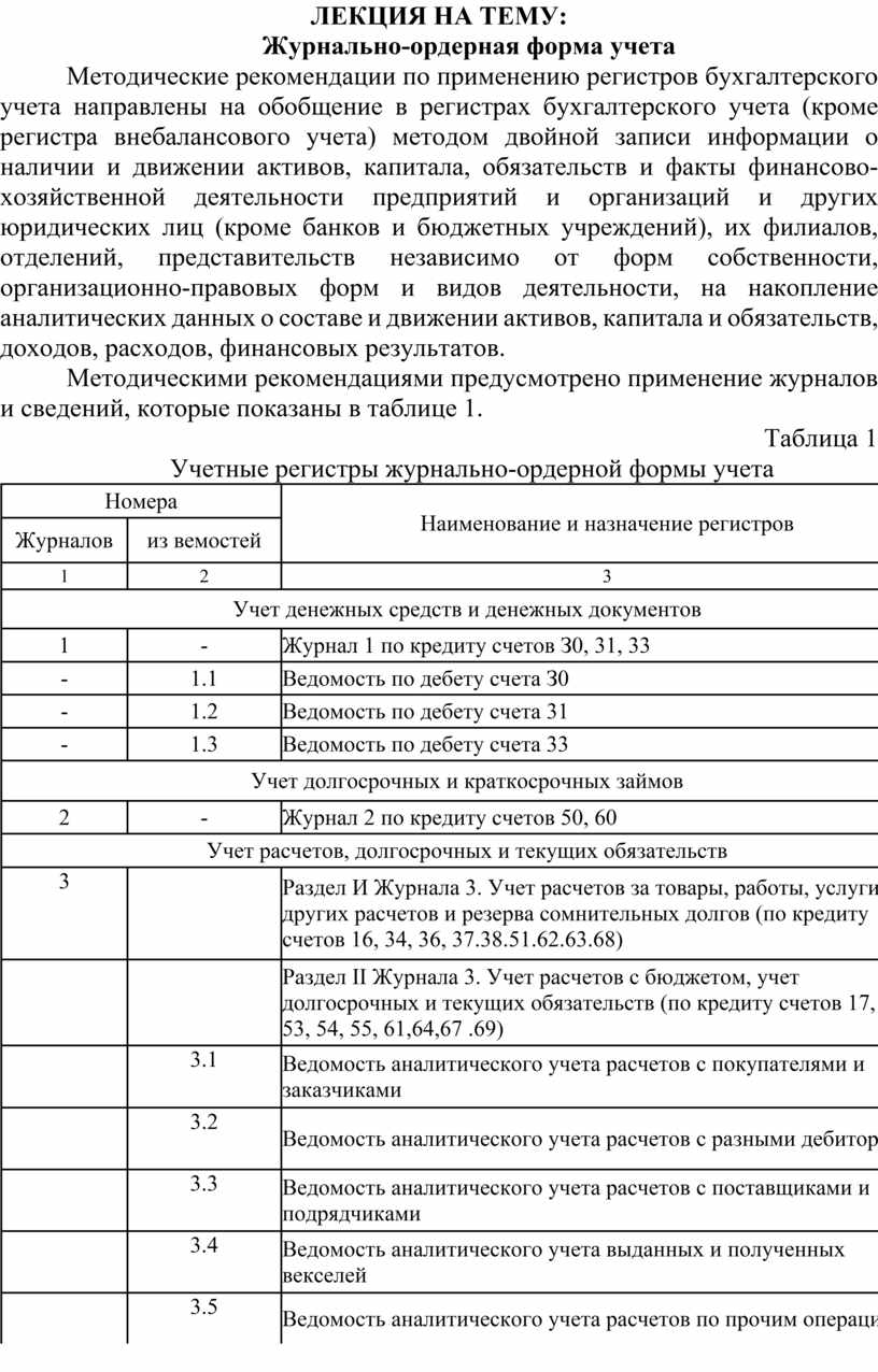 Методическими рекомендациями предусмотрено применение журналов и сведений, которые показаны в таблице 1.