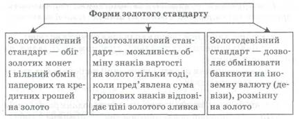 — золотодевізний (золотовалютний) стандарт (із 1922 р. до початку Другої світової війни).