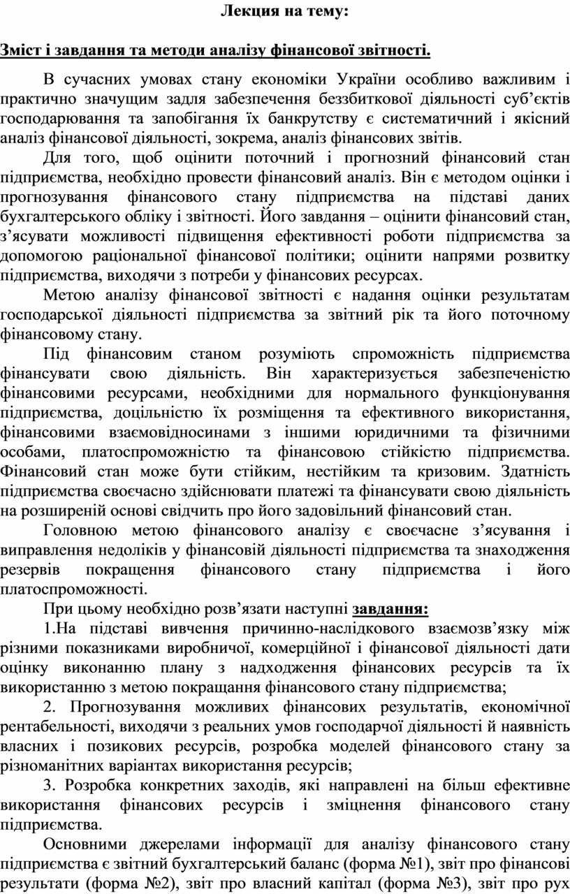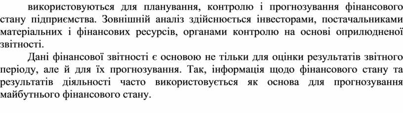 Метою аналізу фінансової звітності є надання оцінки результатам господарської діяльності підприємства за звітний рік та його поточному фінансовому стану.