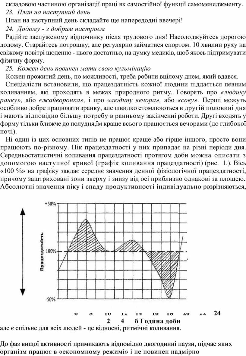 Важливо, щоб кожен менеджер знайшов свій особистий стиль. Для нього цей стиль - найкращий. Л.Зайверт наводить 25 організаційних принципів в часовому аспекті, які поділяє на три групи: