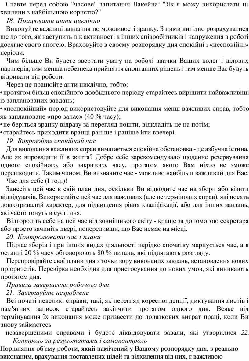 незавершеними справами і будете ліквідовувати завали, які утворилися 22. Контроль за результатами і самоконтроль