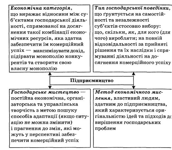 Підприємництво — явище досить широке і багатовимірне. Тому в теорії поняття "підприємництво" розглядається як різно-аспектне (рис.1).
