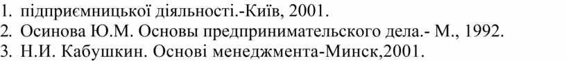 3. Осинова Ю.М. Основы предпринимательского дела.- М., 1992.