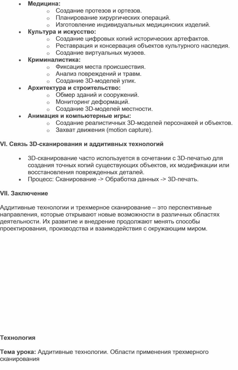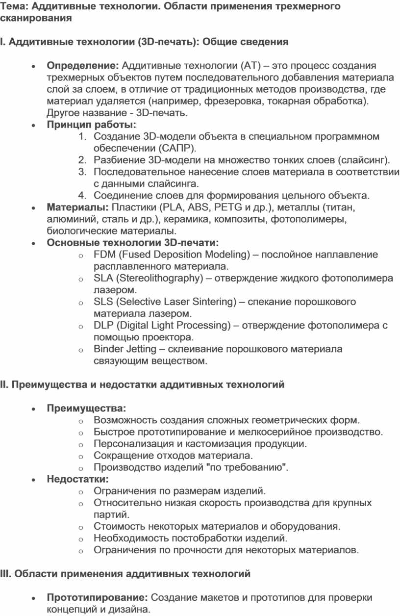 Тема: Аддитивные технологии. Области применения трехмерного сканирования