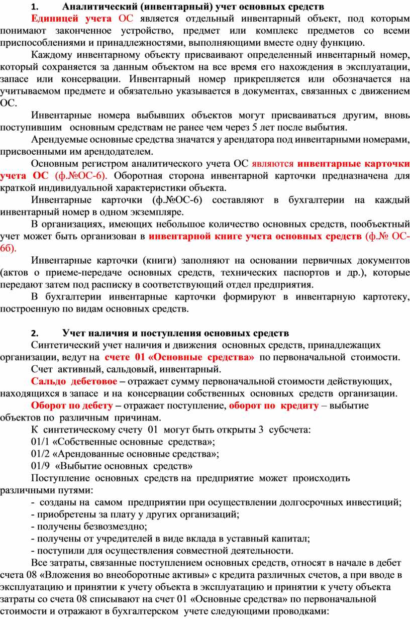 2. Аналитический (инвентарный) учет основных средств