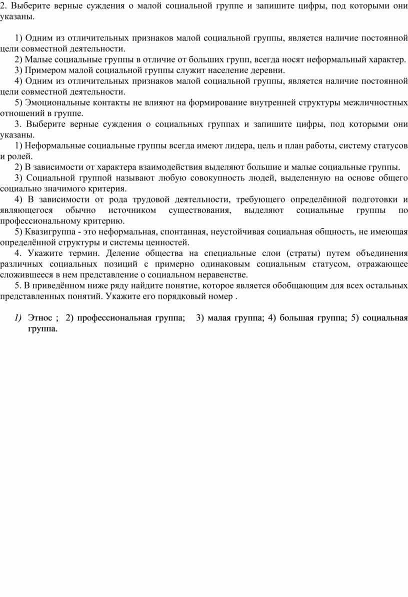 2. Выберите верные суждения о малой социальной группе и запишите цифры, под которыми они указаны.