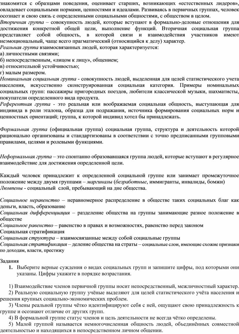 1. Выберите верные суждения о видах социальных групп и запишите цифры, под которыми они указаны. Цифры укажите в порядке возрастания.