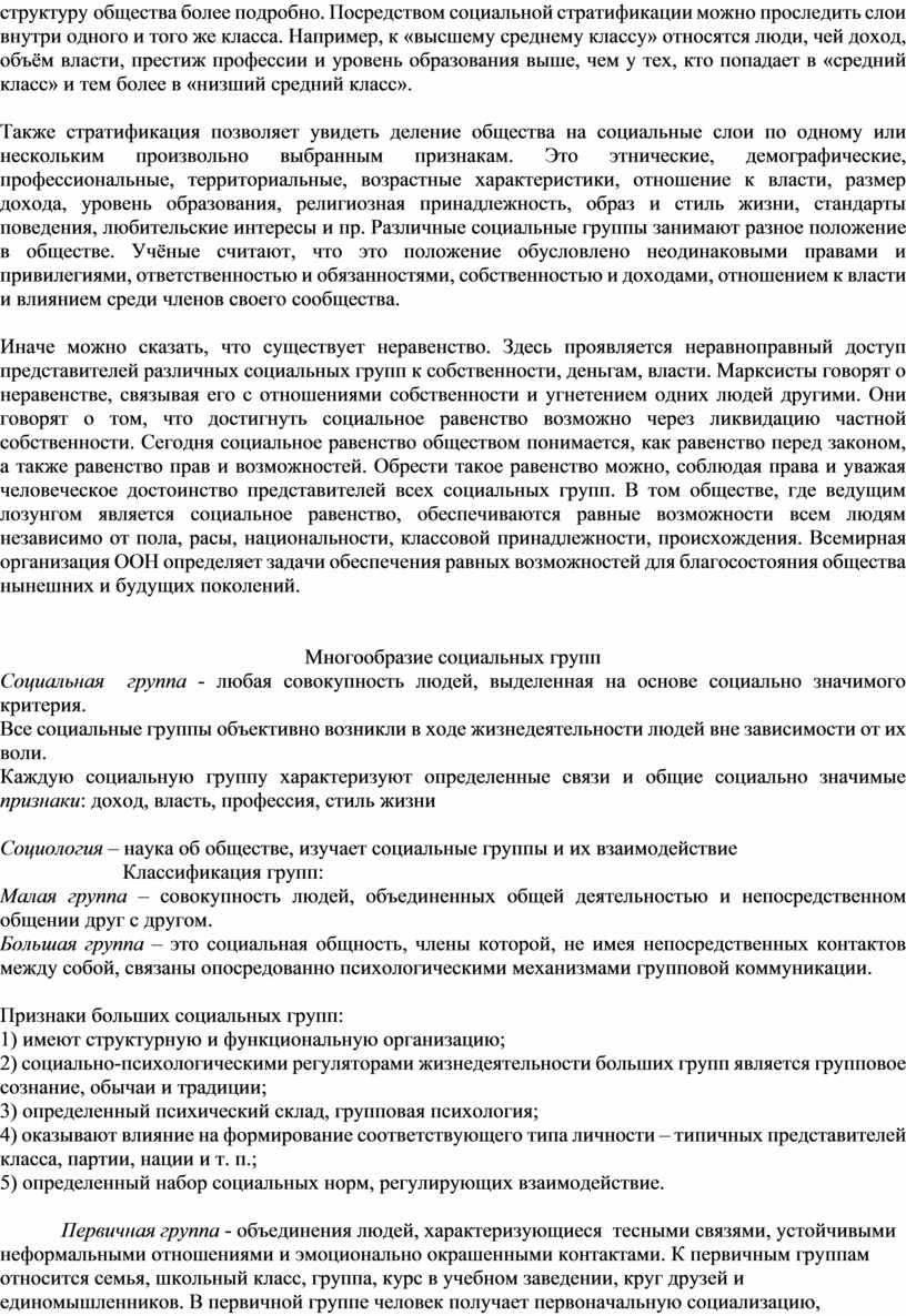 Социальная дифференциация – разделение общества на группы занимающие разное положение в обществе