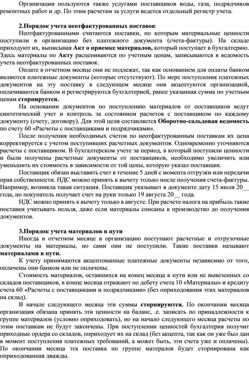 2.Порядок учета неотфактурованных поставок
