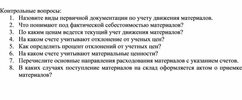 1. Назовите виды первичной документации по учету движения материалов.
