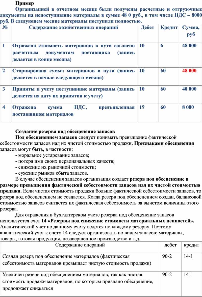 Создание резерва под обесценение запасов
