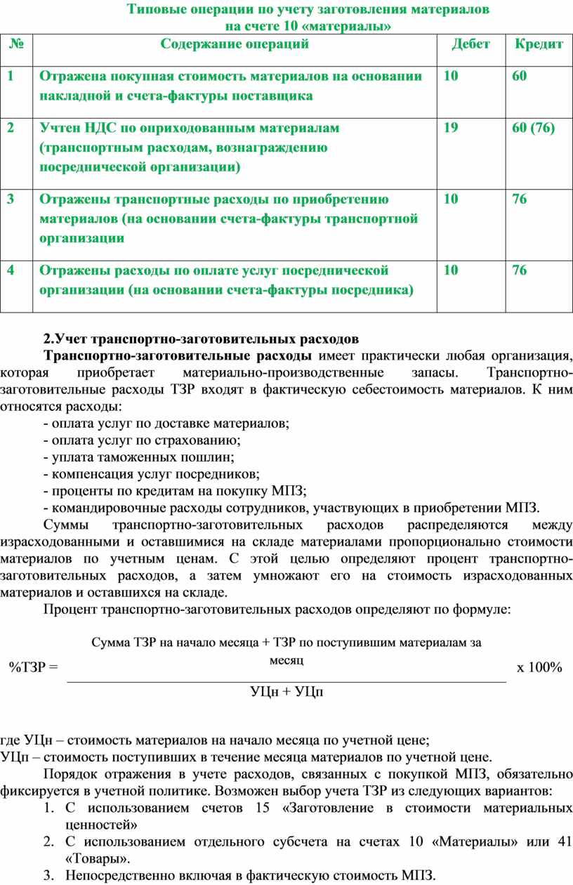 Транспортно-заготовительные расходы имеет практически любая организация, которая приобретает материально-производственные запасы. Транспортно-заготовительные расходы ТЗР входят в фактическую себестоимость материалов. К ним относятся расходы: