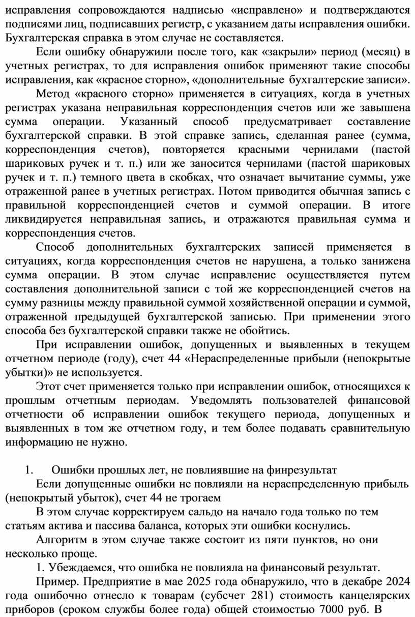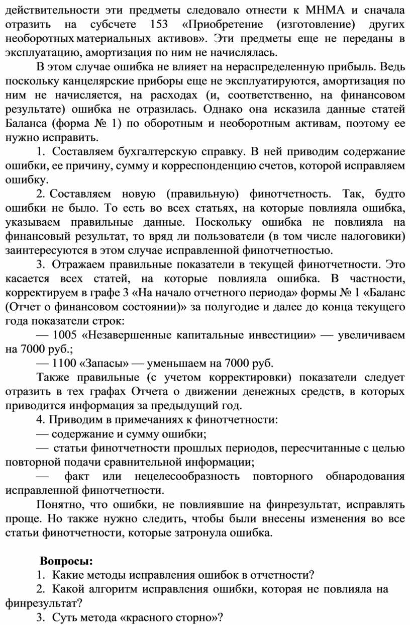 1. Какие методы исправления ошибок в отчетности?