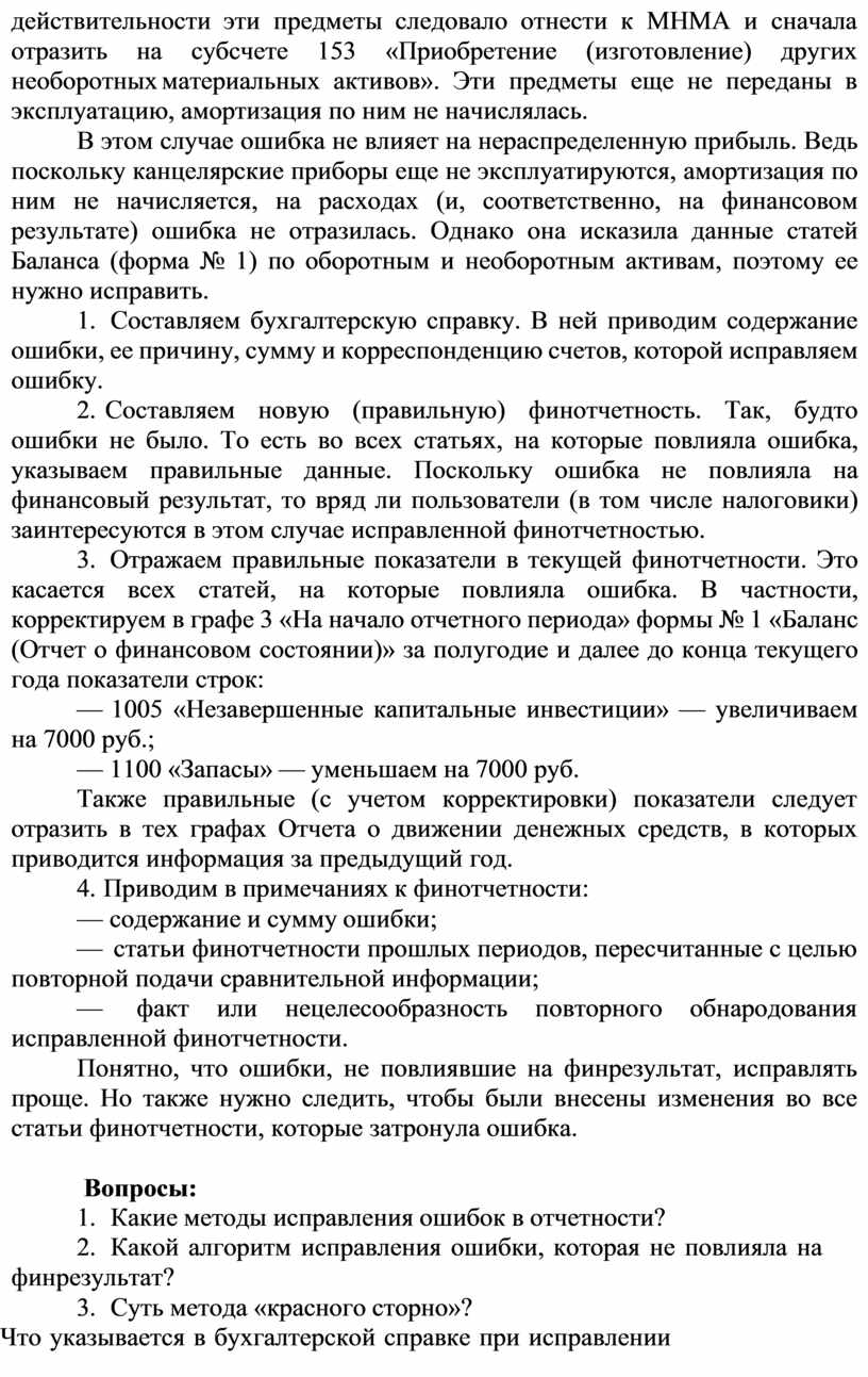 4. Что указывается в бухгалтерской справке при исправлении ошибки не повлиявшей на фин результат ?