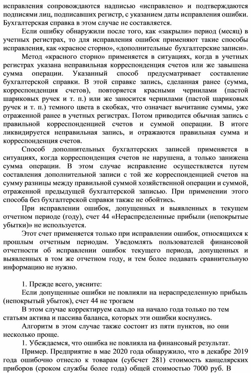 1. Ошибки, допущенные и выявленные в том же отчетном периоде