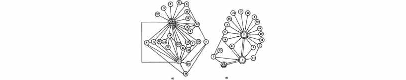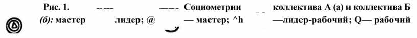 Рис. 1. Социометрии коллектива А (а) и коллектива Б (б): мастер лидер; @ — мастер; ^h —лидер-рабочий; Q— рабочий