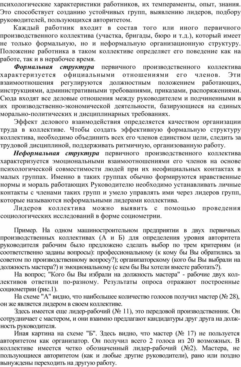 психологические характеристики работников, их темпераменты, опыт, знания. Это способствует созданию устойчивых групп, выявлению лидеров, подбору руководителей, пользующихся авторитетом.