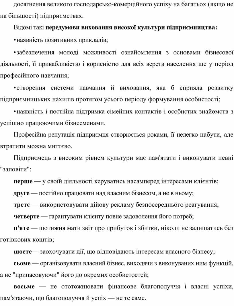 Висока культура підприємницької діяльності є неодмінною умовою досягнення великого господарсько-комерційного успіху на багатьох (якщо не на більшості) підприємствах.