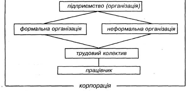 Здійснюючи організаційну діяльність, менеджер діє в умовах складної структури підприємства, головними компонентами якої є: => формальна організація; => неформальна організація; =>працівник; ^ трудовий колектив; => корпорація.