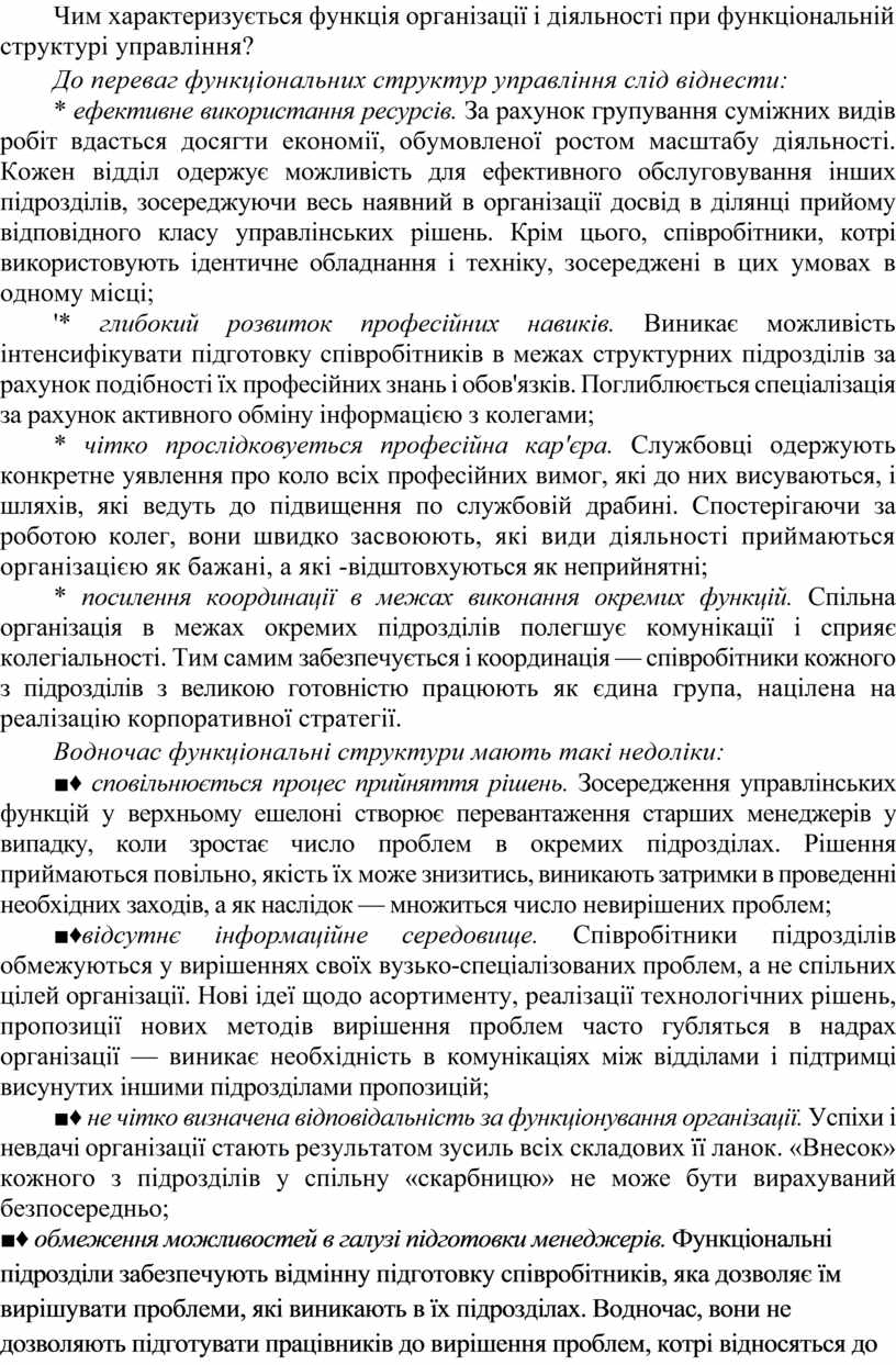 Чим характеризується функція організації і діяльності при функціональній структурі управління?