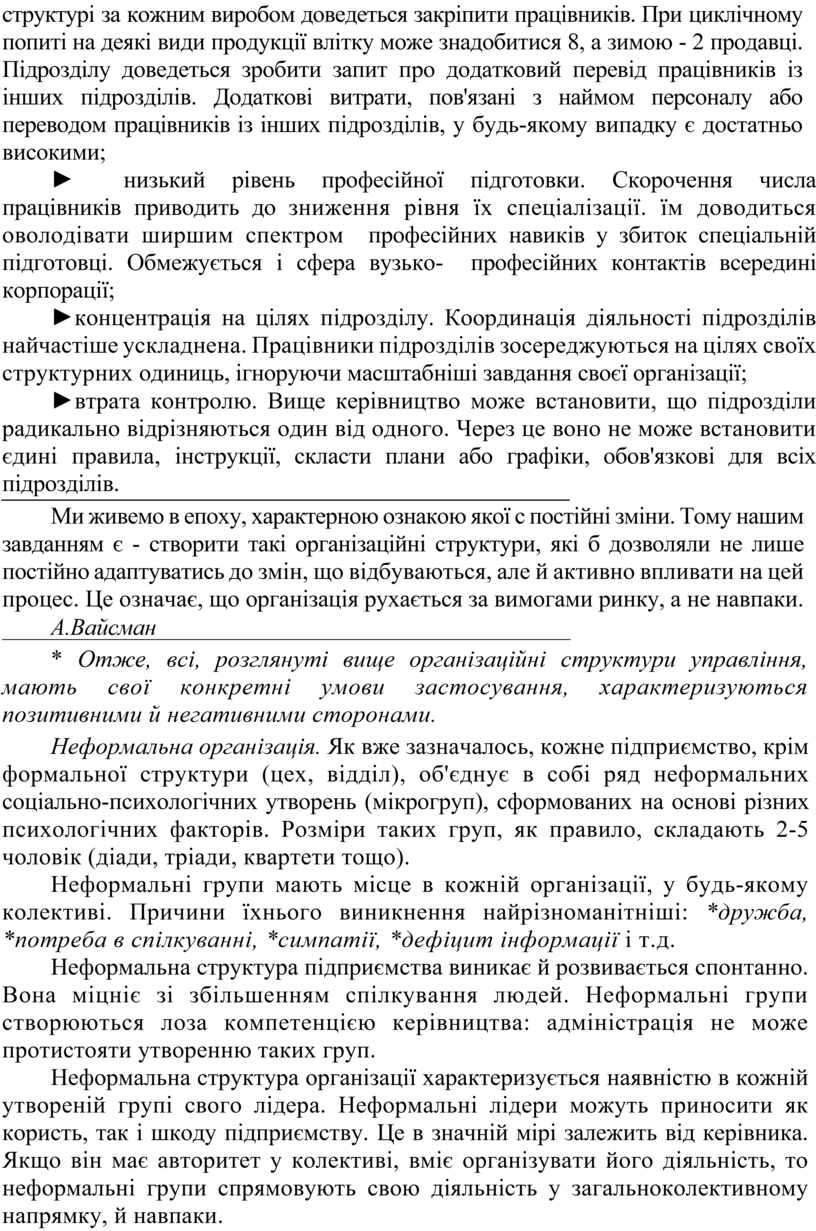 ► низький рівень професійної підготовки. Скорочення числа працівників приводить до зниження рівня їх спеціалізації. їм доводиться оволодівати ширшим спектром професійних навиків у збиток спеціальній підготовці. Обмежується і сфера вузько- професійних контактів всередині корпорації;
