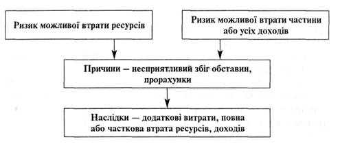Отже, ризик — це небезпека втрати повністю або частково ресурсів або доходів. Іншими словами, ризик має якісну й кількісну оцінки. Якщо відбувається та чи інша подія в ринковому середовищі, то можливими можуть стати три економічні результати: негативний (програш, збитки), нульовий і позитивний (виграш, вигода).