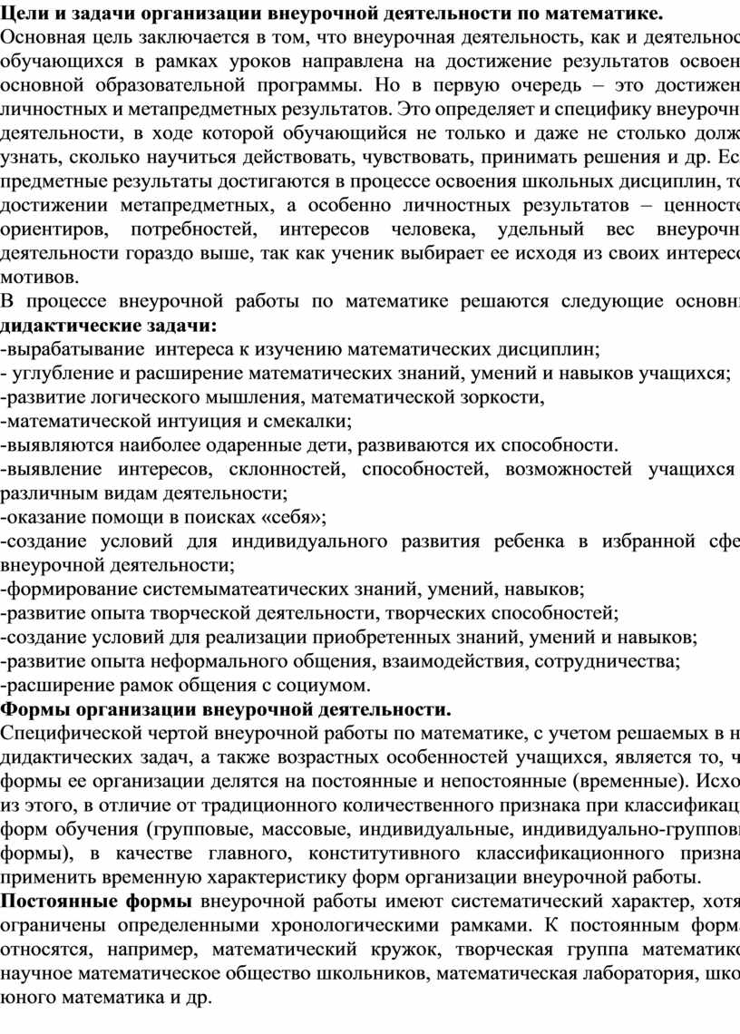 В процессе внеурочной работы по математике решаются следующие основные дидактические задачи: