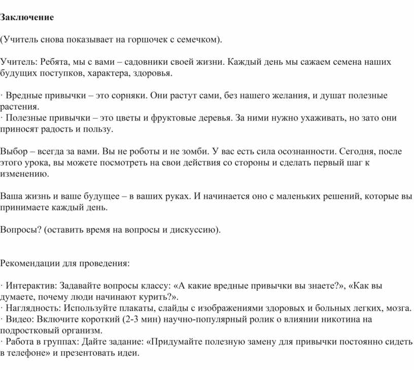 · Видео: Включите короткий (2-3 мин) научно-популярный ролик о влиянии никотина на подростковый организм.