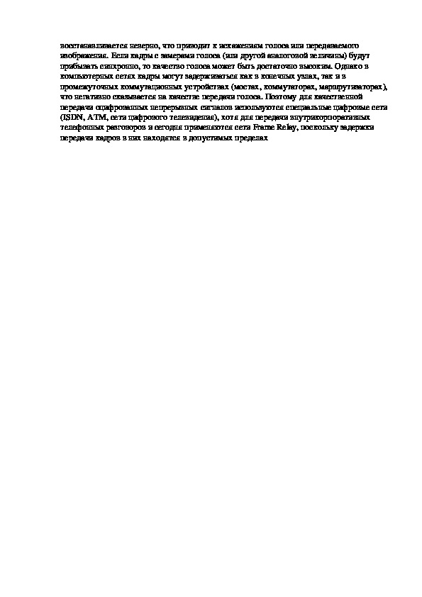 передачи оцифрованных непрерывных сигналов используются специальные цифровые сети