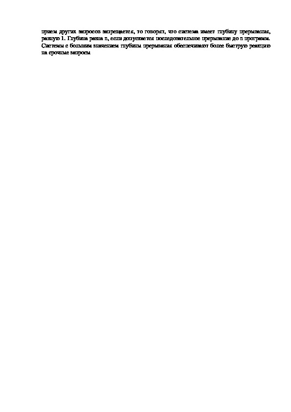 возврат к прерванной программе.прием других запросов запрещается, то говорят, что система имеет глубину прерывания,