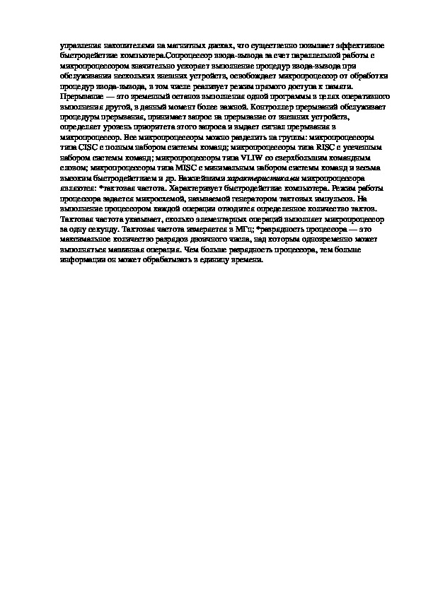 высоким быстродействием и др. Важнейшими характеристиками микропроцессора