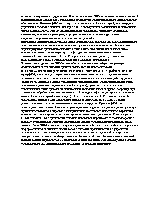 общетехнические, профессиональные, бытовые и другие ЭВМ.Если общетехнические ЭВМ