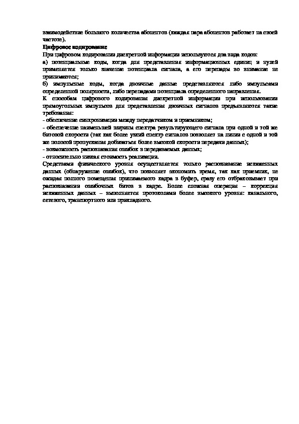 Передача дискретных данных на физическом уровне: цифровое кодирование и
