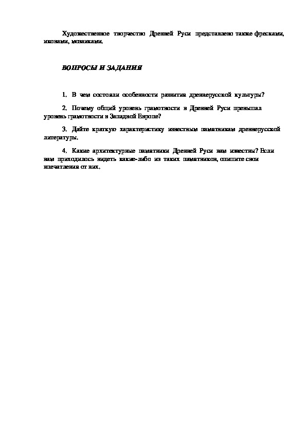искусстве.Художественное творчество Древней Руси представлено также фресками,
