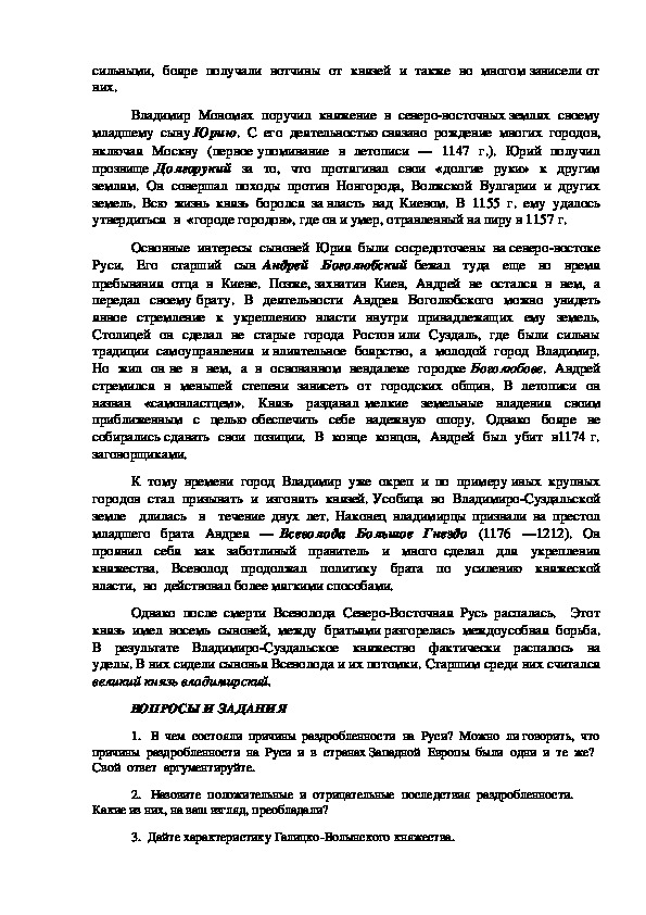 ЛЕКЦИЯ № 22 § 21. Раздробленность на Руси.