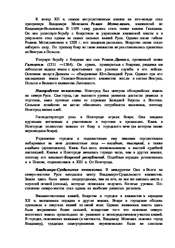 6. Сравните развитие Новгородской, ГалицкоВолынской и Владимиро