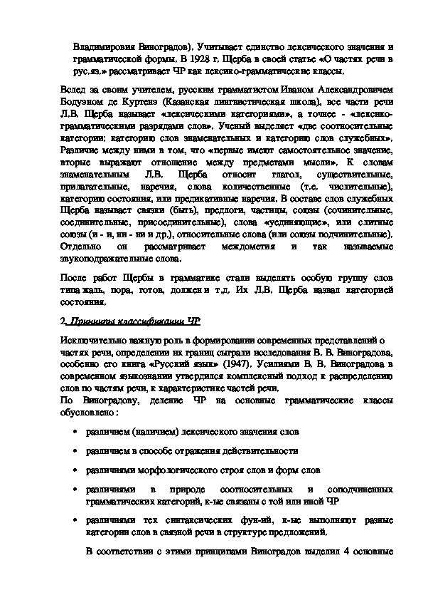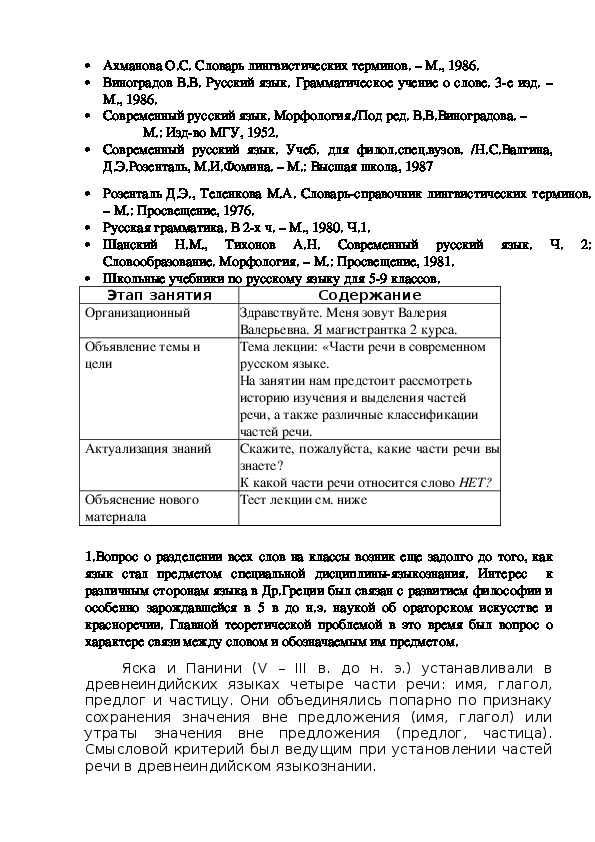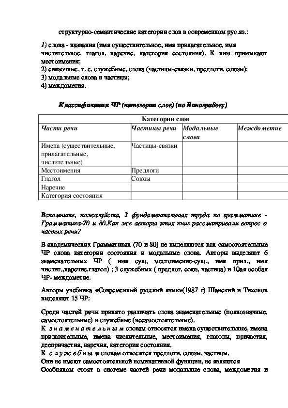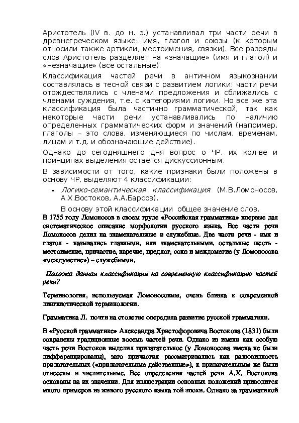 1.Вопрос о разделении всех слов на классы возник еще задолго до того, как