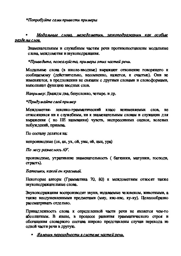 • Охарактеризовать модальные слова, междометия и звукоподражания