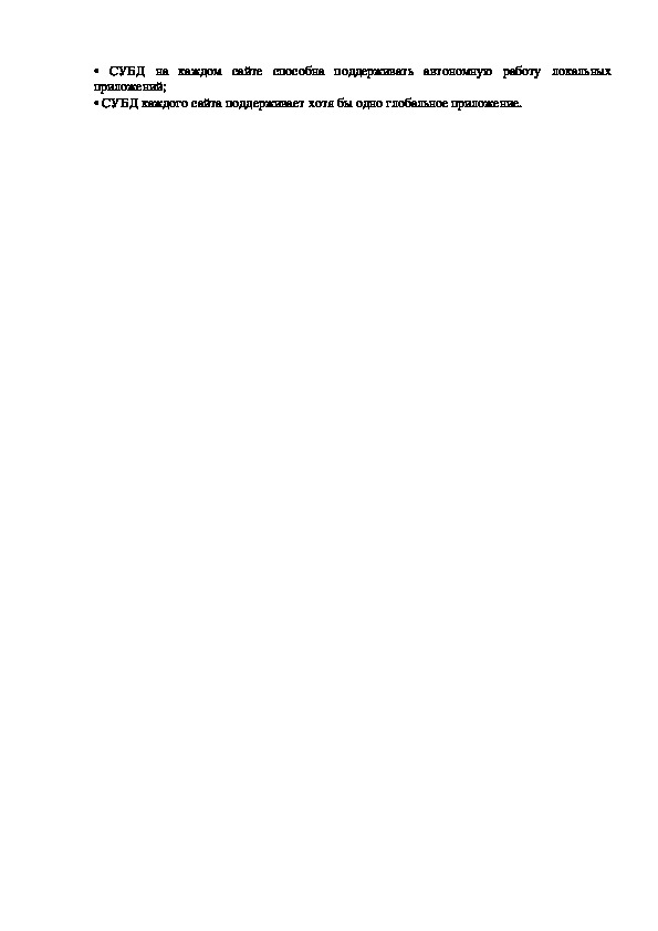 • работа с данными на каждом сайте управляется СУБД;• СУБД на каждом сайте способна поддерживать автономную работу локальных