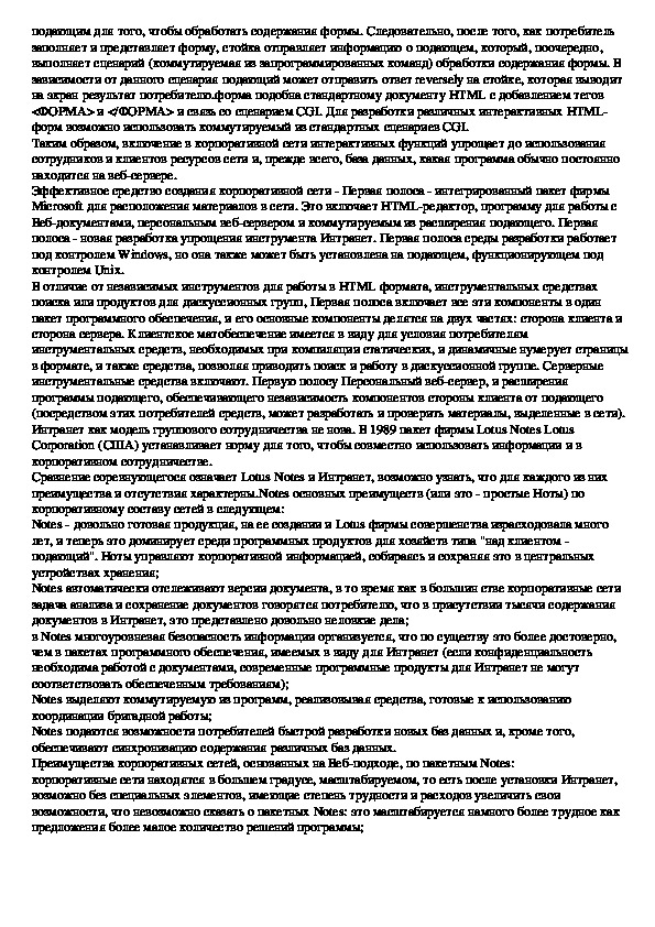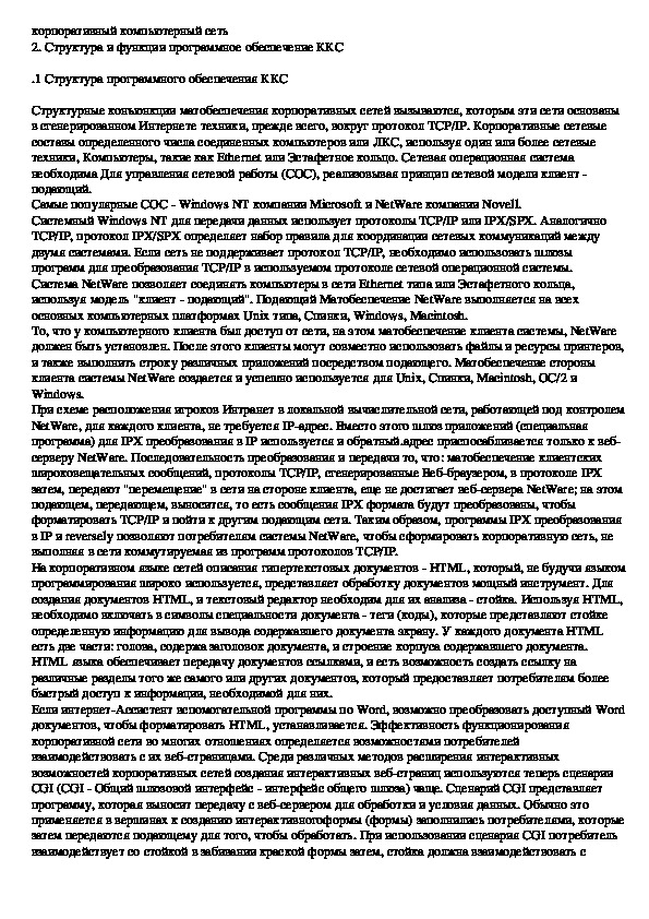 Разработка матобеспечения корпоративных сетей, так же как Интернет сетей, соединяется с широким
